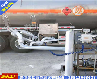 *典型的槽車(chē)底部裝卸鶴管,與槽車(chē)用快速接頭或者法蘭聯接,採(cǎi)用五個旋轉接頭。介質由槽車(chē)卸油口經鶴管自上而下流入管線内,採(cǎi)用重力作用下的自流方式就可卸車(chē),接口高度較高時